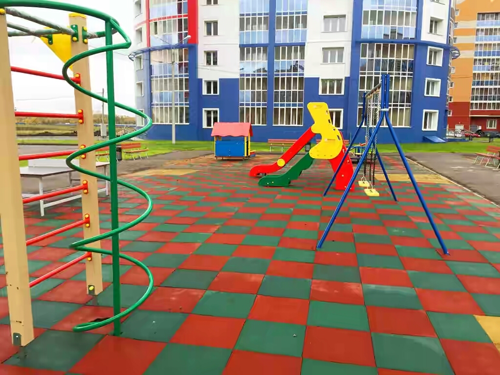 Плотно уложенное резиновое покрытие для площадок выглядит очень красиво, вносит некоторую упорядоченность, внешнюю выразительность месту для игр. Резиновые плиты компании Amadina - многофункциональный, нестираемый, морозостойкий и долговечный материал. Он легко монтируется, сохраняет насыщенность цвета и не требует особенного ухода.
