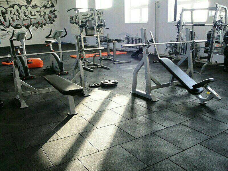 Являясь стильным и эффективным решением для помещений с многочисленным количеством людей и жесткой эксплуатации напольного покрытия, будь то штанги, гири, и т.д. Плитка толщиной 1,5см отлично амортизирует, является шумопоглощающей и травмобезопасной!
